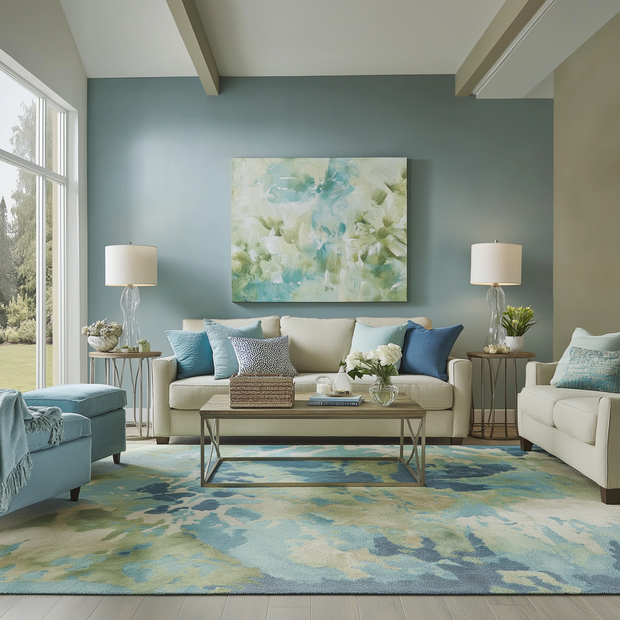 Inspired by serene landscapes, this collection incorporates soothing blues and greens to create a tranquil living space. The colors evoke a sense of peace and connection to the outdoors, promoting relaxation.